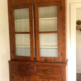Based on everyone’s feedback –and the fact that we couldn’t find a paint color we liked—we decided to stain the old pine cupboard in the mudroom. We pulled in our Stain Master (Charlton) and he went to work. After considering several options we landed on early American stain, and Charlton did the rest. When we saw the finished product, we were thrilled with how well it turned out!